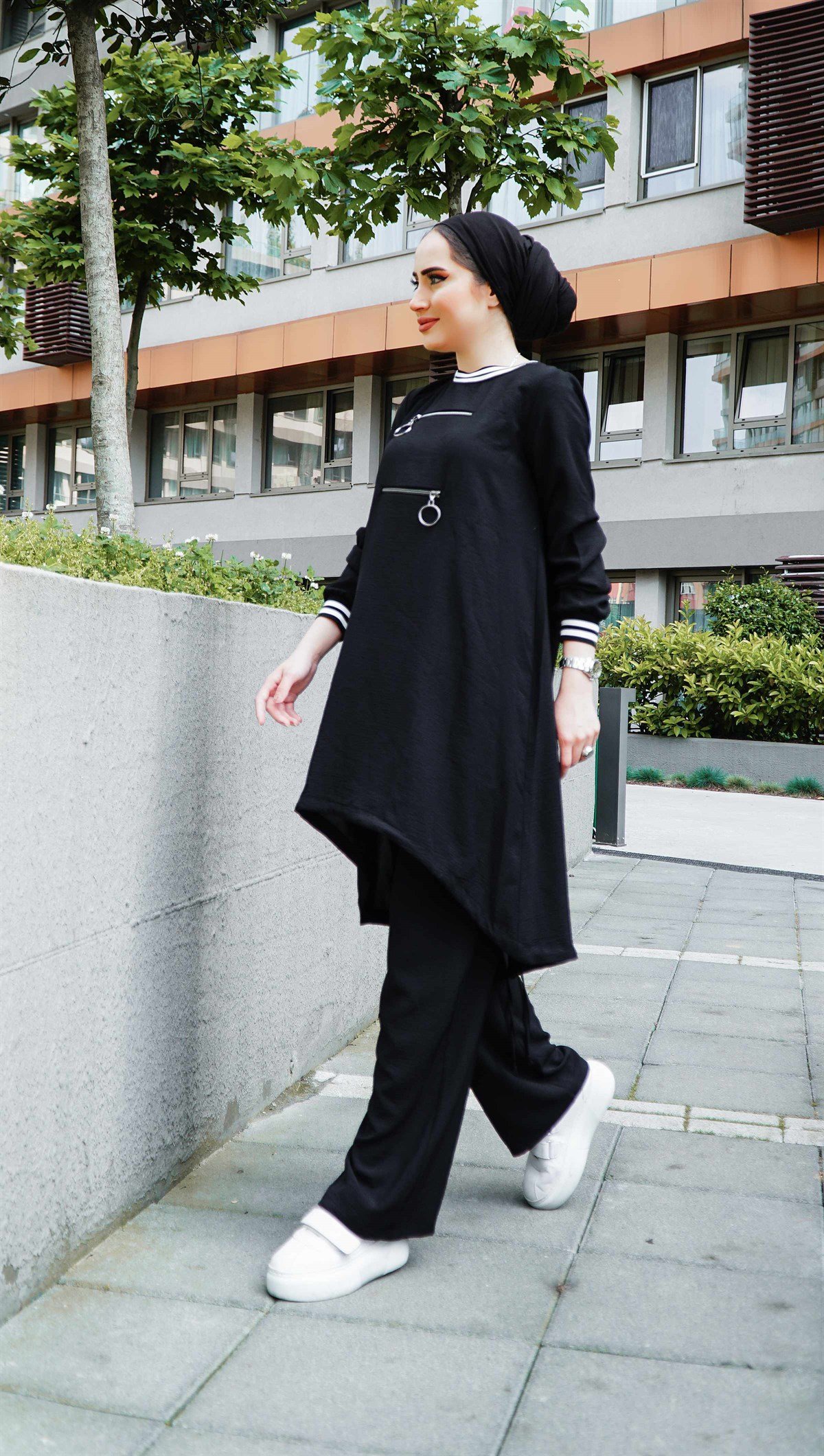 KADIN SİYAH AEROBİN KUMAŞ TESETTÜR TUNİK