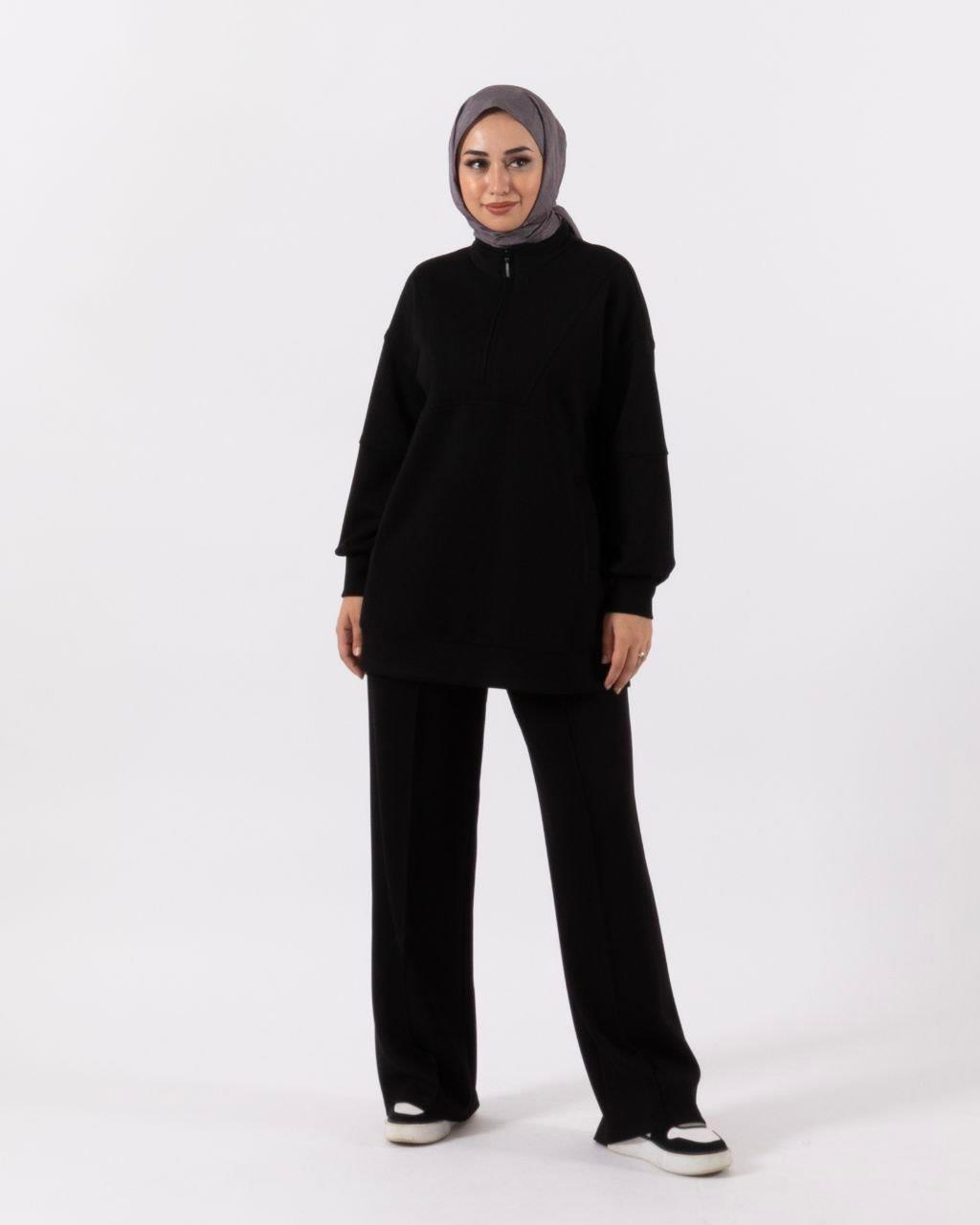 • Kadın  2 iplik tesettür takım. Ürünümüz önden fermuar kapamalı, oversize kalıp, pantolonumuzun beli lastikli bol paçadır.