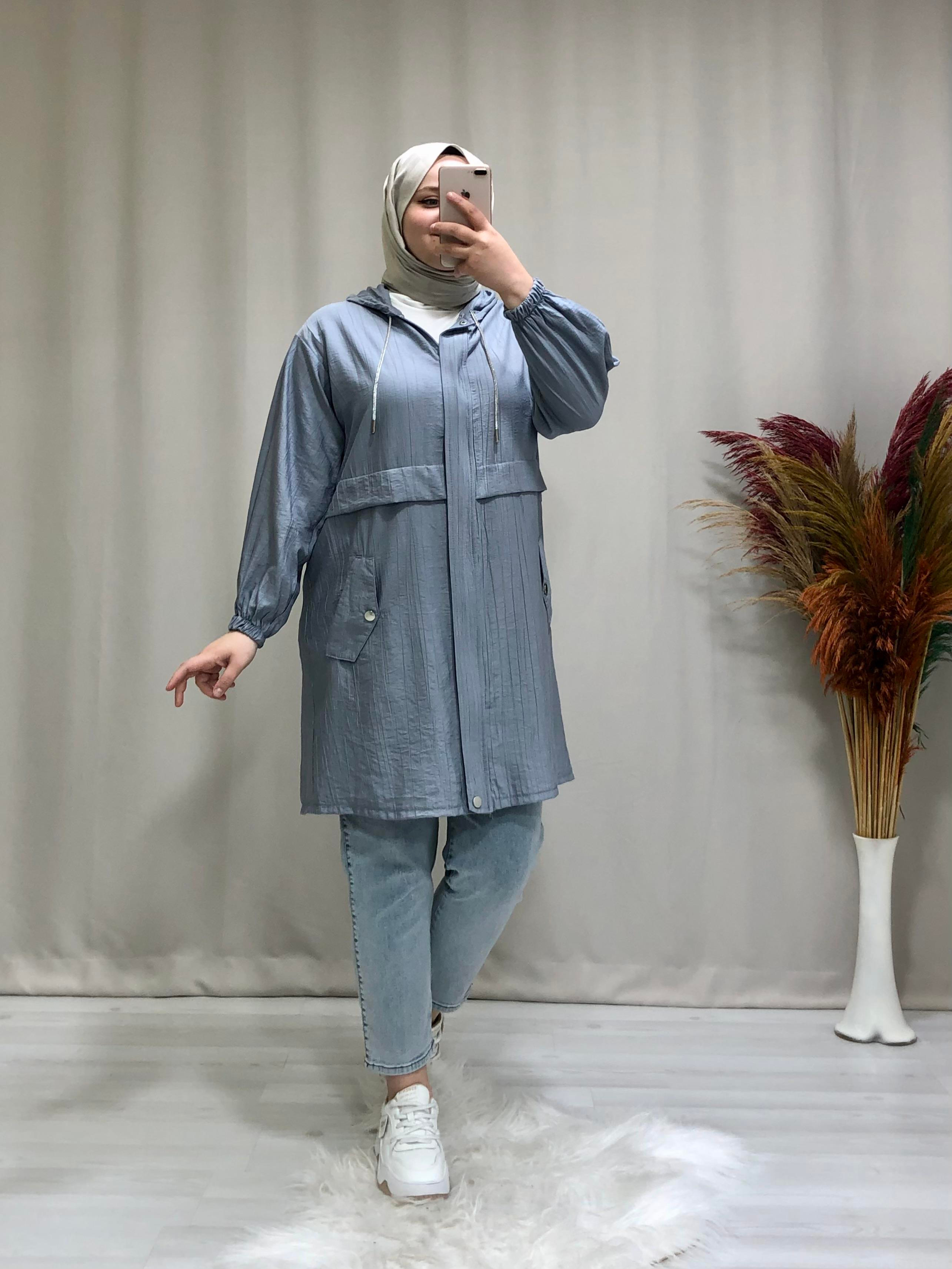 • Kadın çilek kumaş yazlık önden fermuarlı tesettür kap. Ürünümüz kapüşonlu, önden fermuar kapamalı, çift ceplidir.