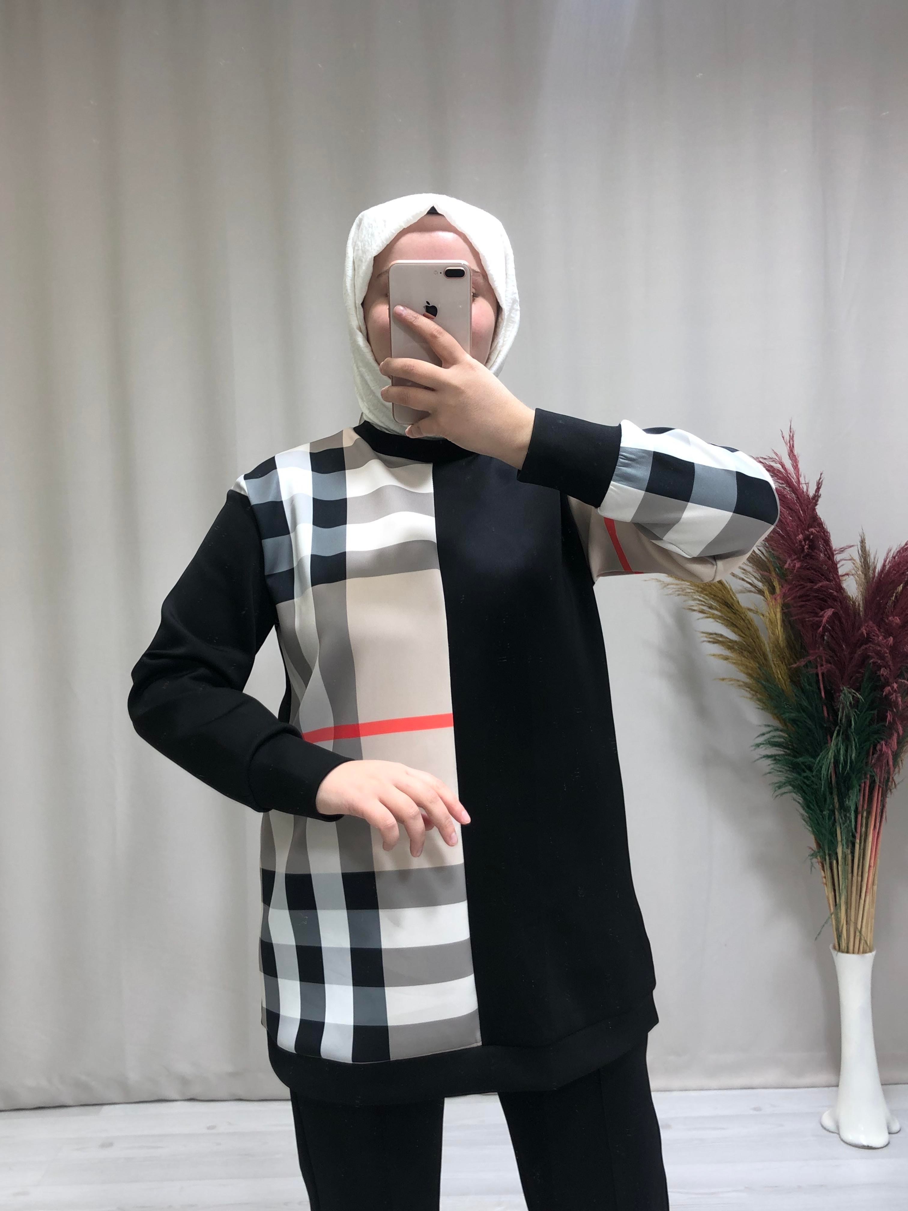 Kadın Ekose Desenli İkili Tesettür Takım. Ürünümüz scuba kumaş, normal omuz, bisiklet yaka ve beli lastiklidir.