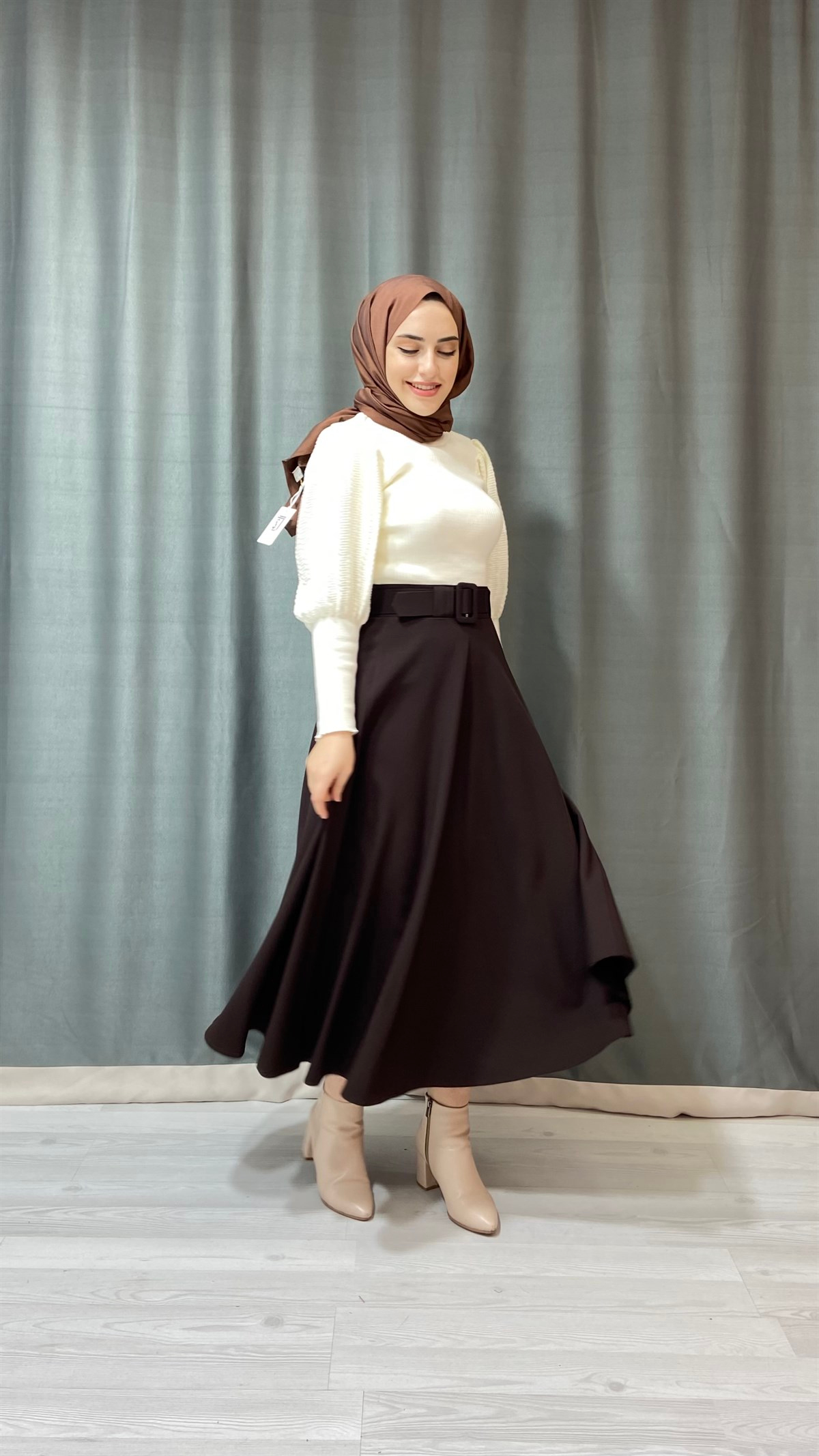 KADIN KAHVERENGİ MEVLANA MODEL TESETTÜR ETEK.