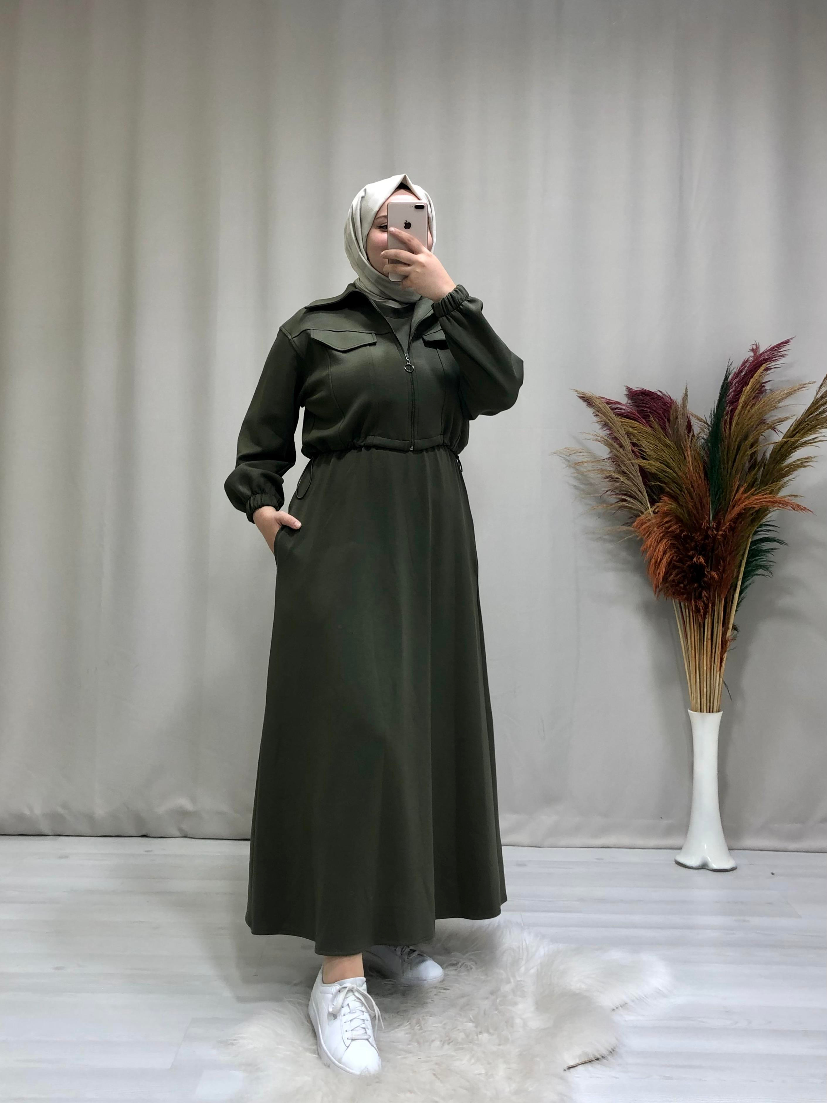 • Kadın modal kumaş ikili takım spor elbise. Ürünümüz iki parçadan oluşmaktadır, elbise iç askılı , beli lastikli, eteği kloştur, üzerinde ceketi  fermuarlı önden cep detaylıdır.
