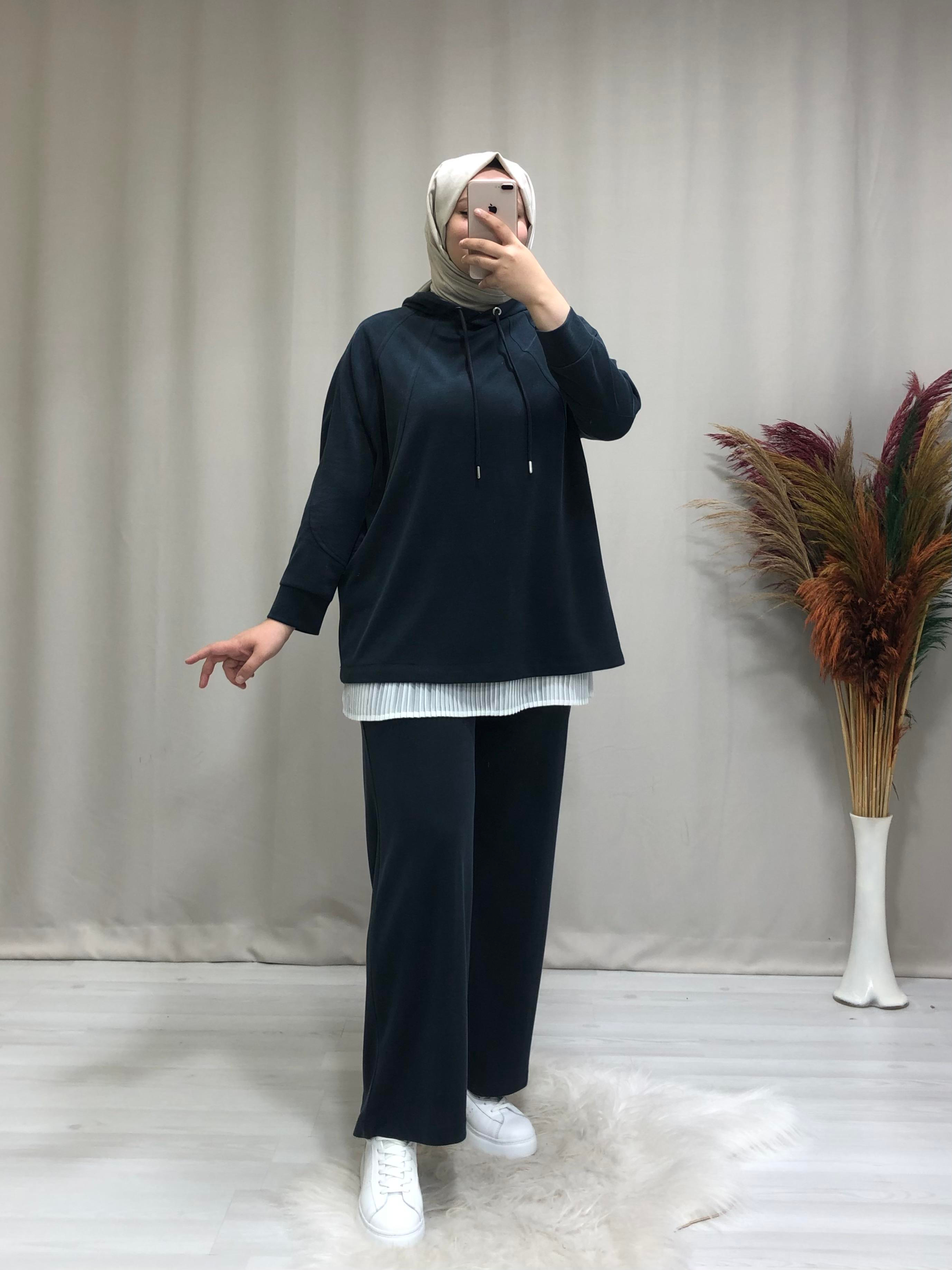• Kadın oysh kumaş tesettür  ikili spor takım. Ürünümüz kapüşonlu, pantolon belli lastikli, ceplidir.