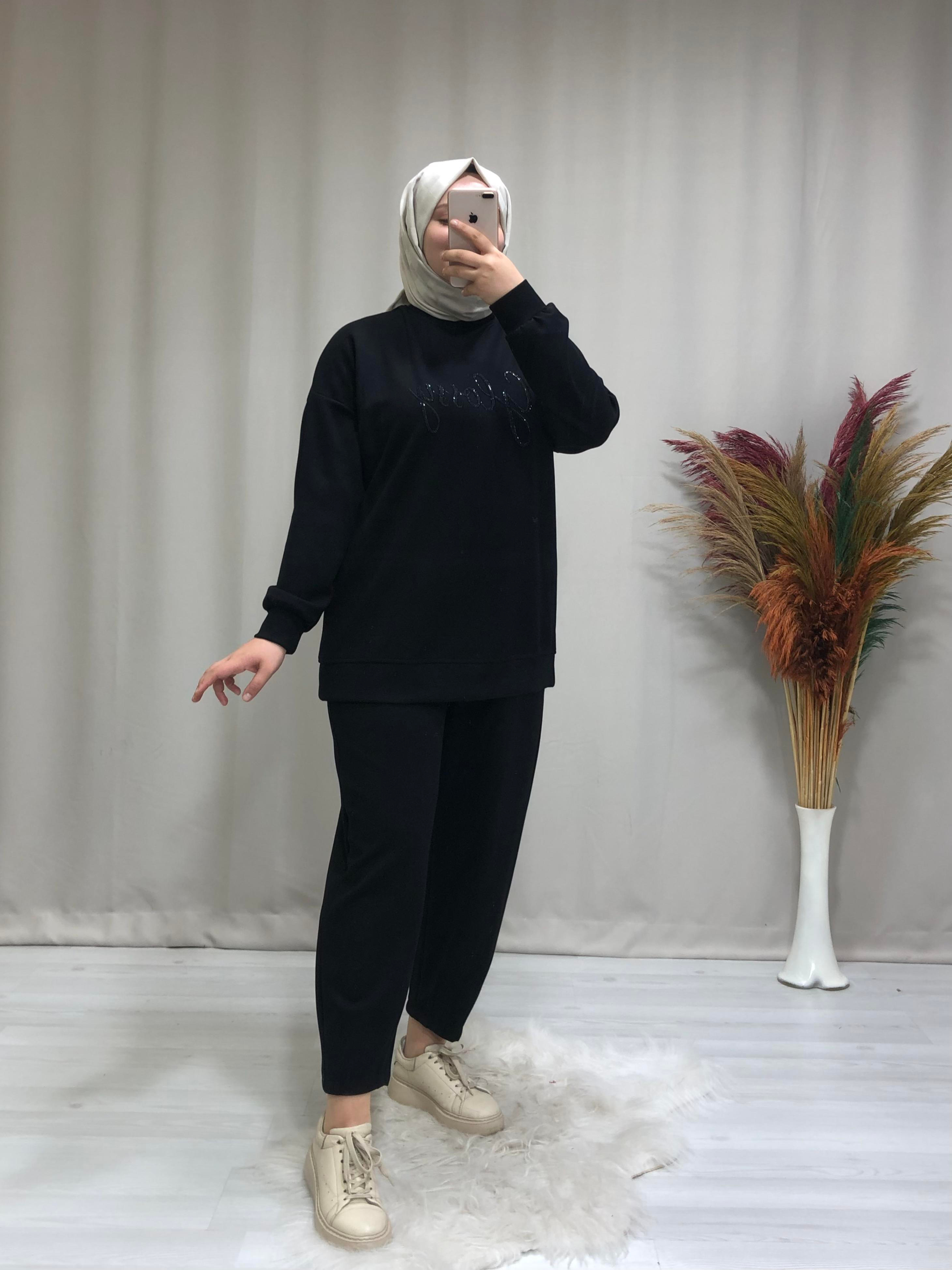 Kadın oysho kumaş nakış ve taş yazılı spor takım