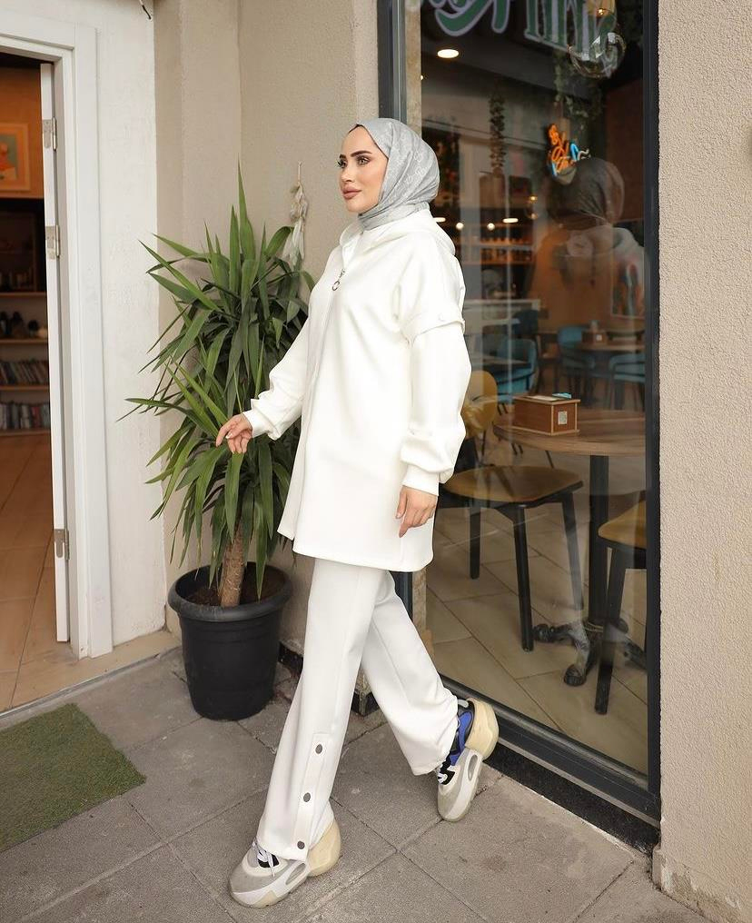 Kadın Scuba Kumaş Kol Detaylı Kapüşonlu Tesettür Takım. Ürünümüz S-M ve L-XL olmak üzere 2 bedenden oluşmaktadır.