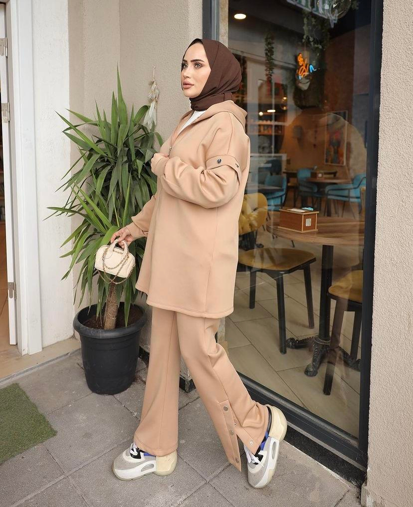 Kadın Scuba Kumaş Kol Detaylı Kapüşonlu Tesettür Takım. Ürünümüz S-M ve L-XL olmak üzere 2 bedenden oluşmaktadır.