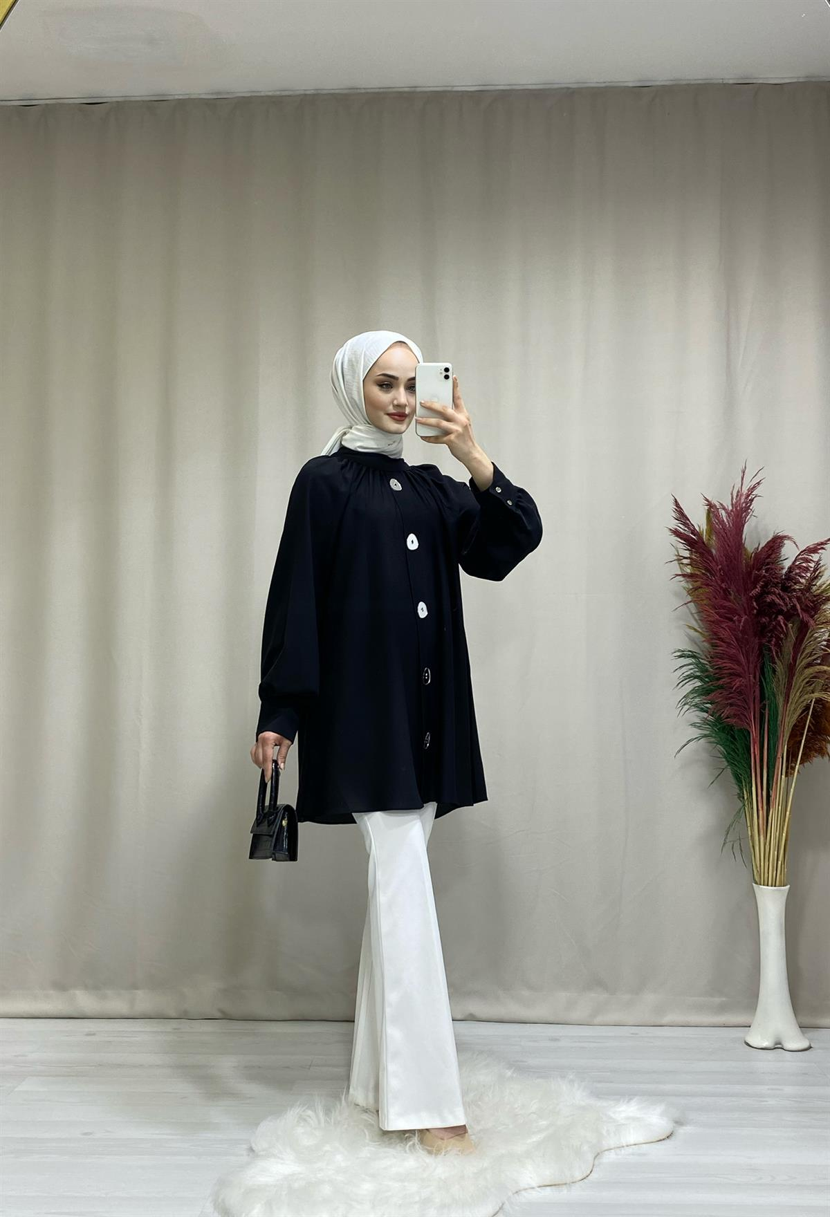 KADIN SİYAH KREP KUMAŞ TESETTÜR TUNİK