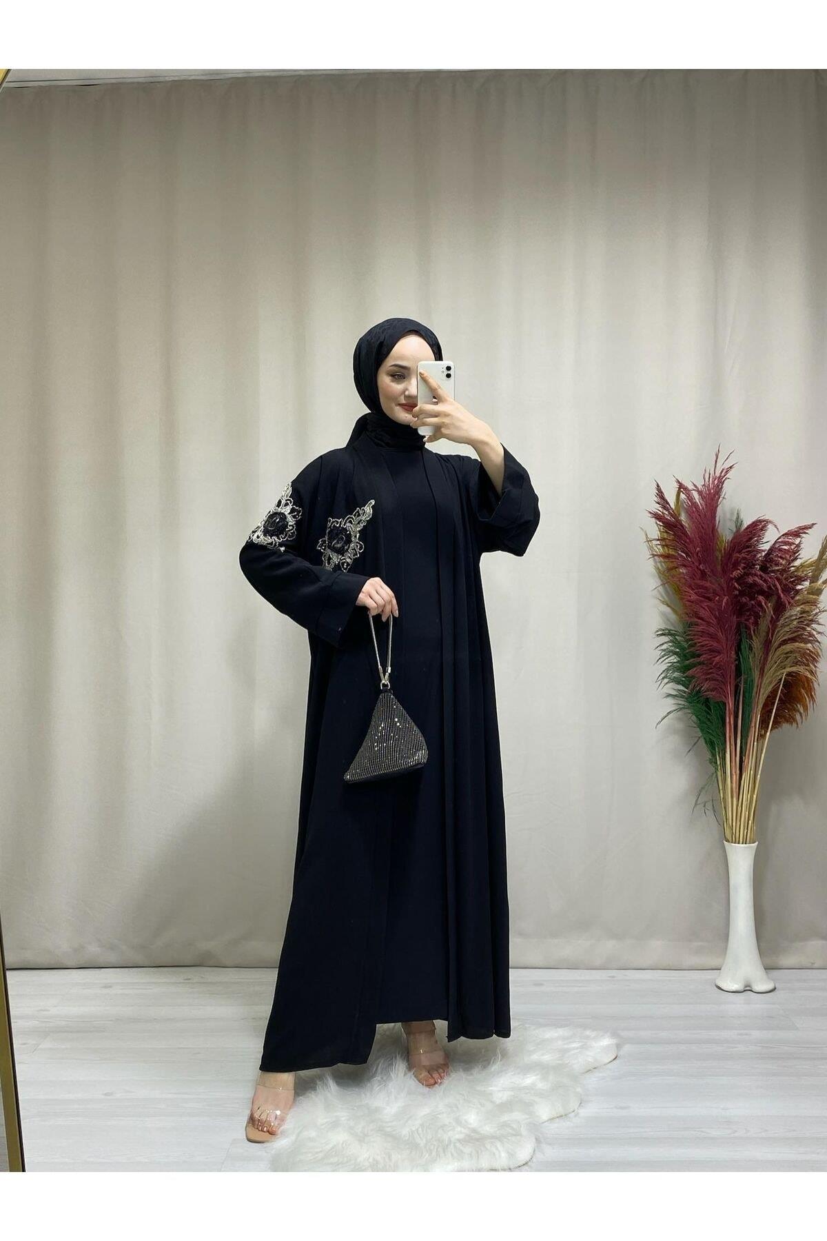 KADIN SİYAH TAŞ İŞLEMELİ TESETTÜR ABAYA