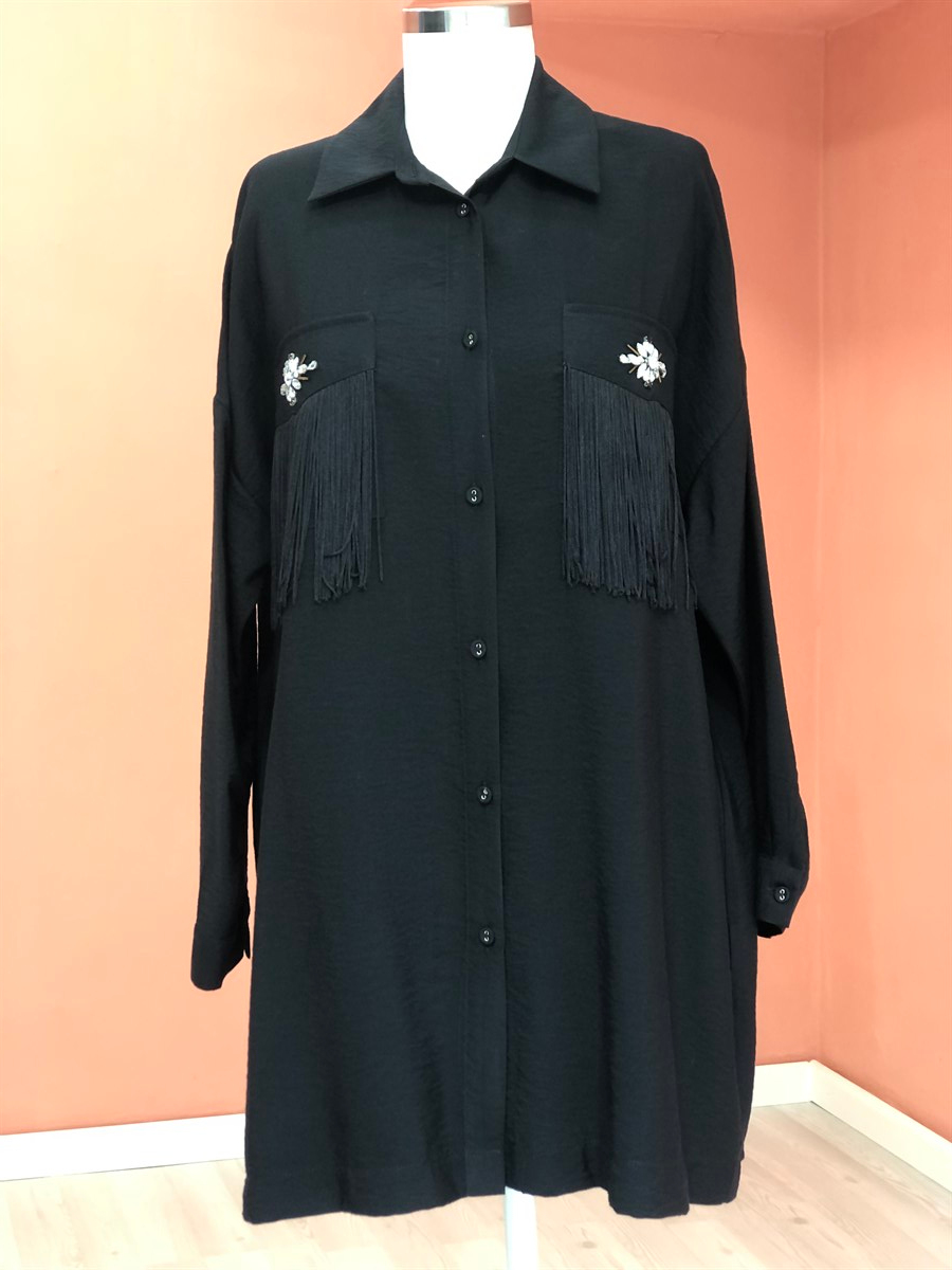 KADIN SİYAH ÖNDEN DÜĞMELİ TESETTÜR GÖMLEK.