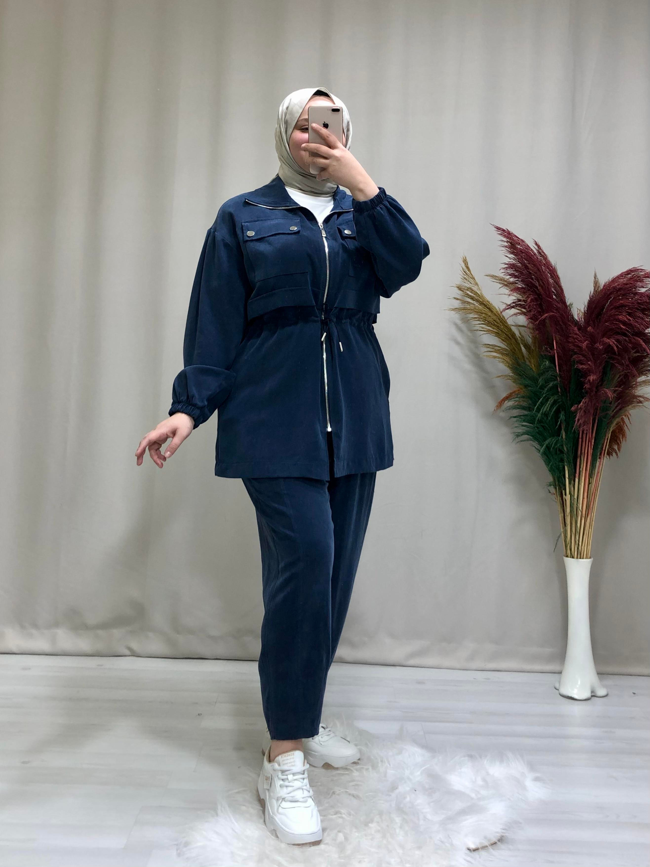 • ürünümüz belden büzgülü, ön göğüs kısmında iki cep detayı bulunur.