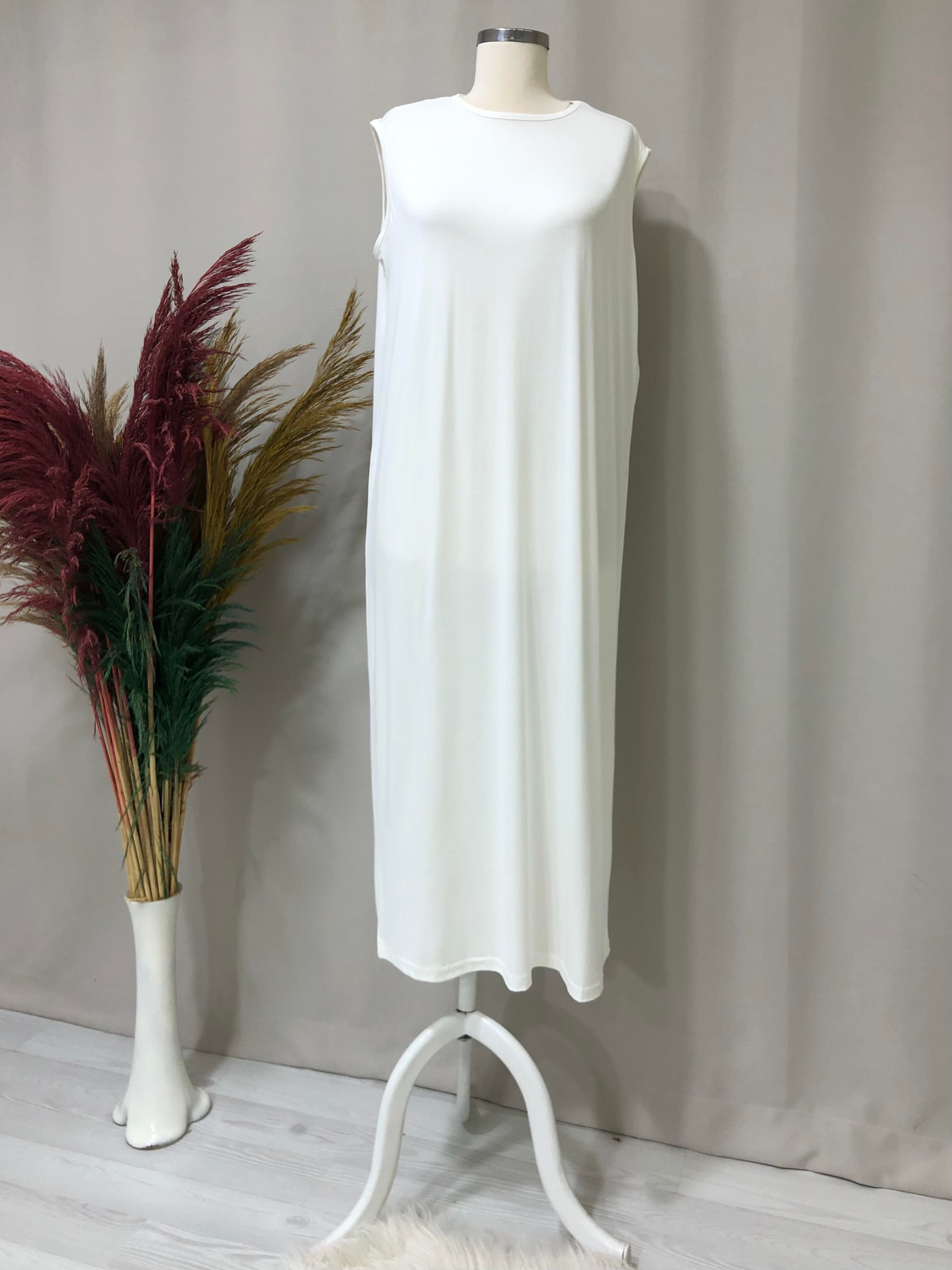 • Kadın standart beden sıfır kollu penye iç elbise. Ürünümüz bisiklet yaka,  oversize  kalıp ,36 / 46 uyumludur. Esnek kumaşa sahiptir, büyük bedenlerde tercih edebilir.