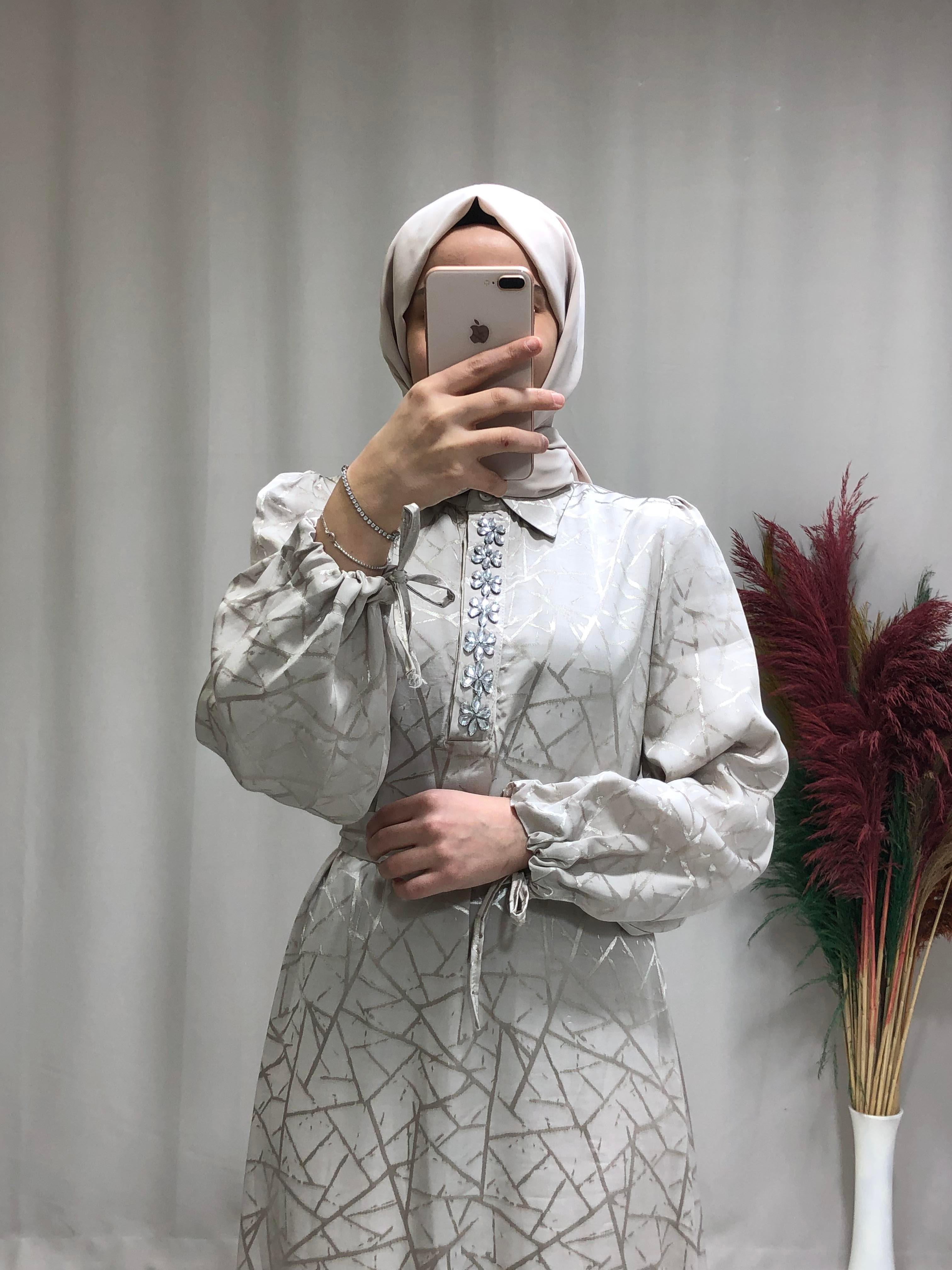 Ürünümüz gömlek yaka, kolları ip bağlama detaylı,etek kısmı fırfır