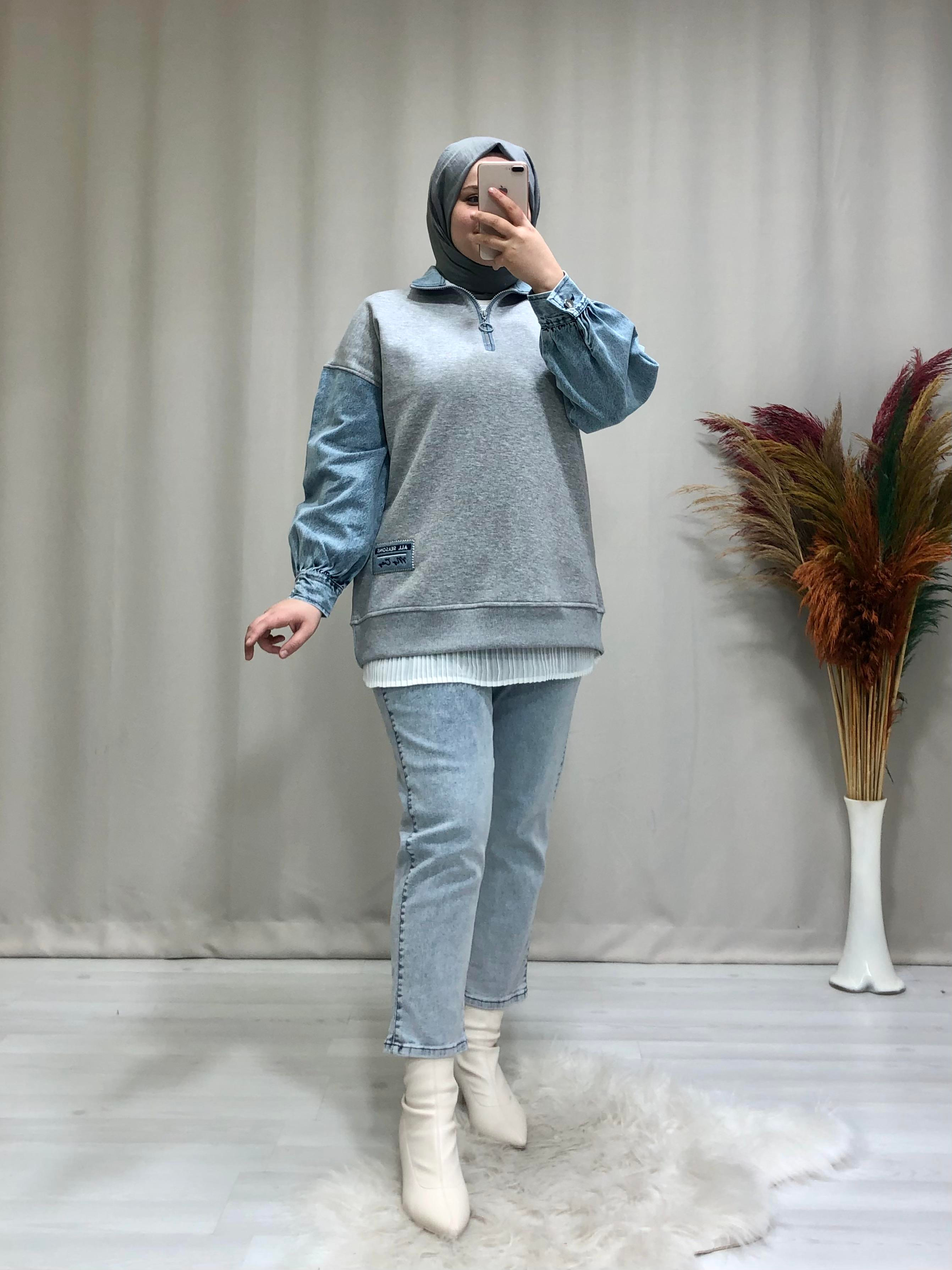 Kadın tesettür kot detaylı tunik