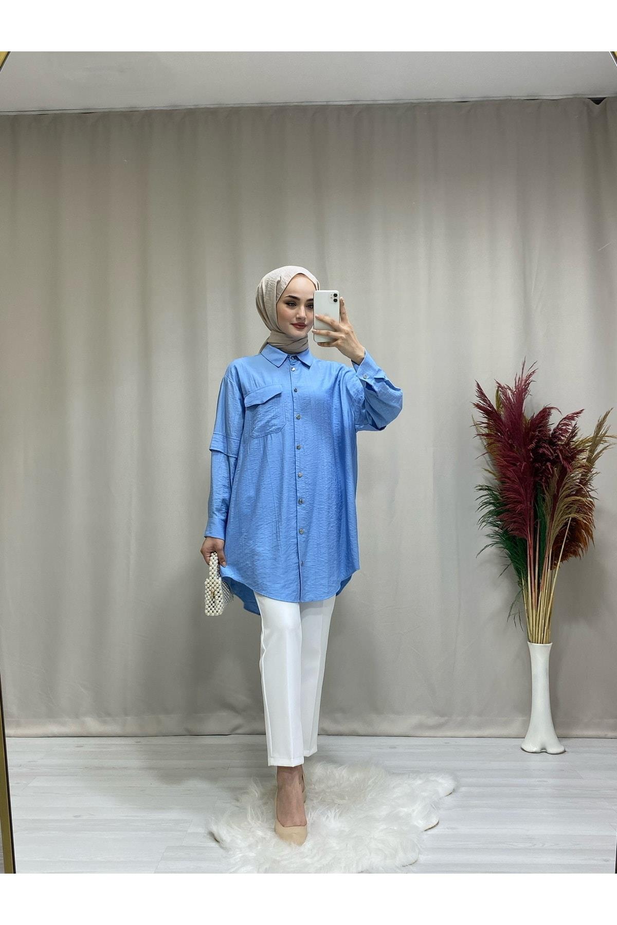 KADIN TESETTÜR GÖMLEK ÜRÜNÜMÜZ ÖNDEN DÜĞMELİ KOL AĞZI MANŞETLİ VE GÖĞÜS KISMINDA CEP DETAYLI KOL KISMINDA PARÇA DETAYLIDIR ÜRÜNÜMÜZ PAMUK KARIŞIM KUMAŞTIR ÜRÜNÜMÜZ 1-2 NUMARALI OLUP 36-38-40 BEDENLER 1 NUMARA 42-44 BEDEN 2 NUMAMARA TERCİH EDEBİLİR