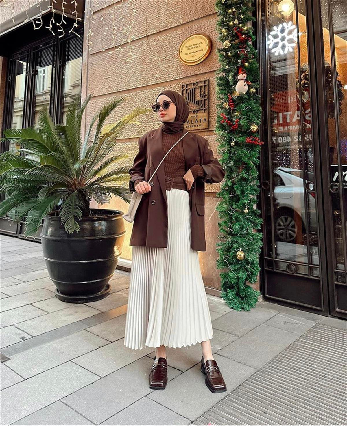 KADIN TESETTÜR PİLİSELİ SATEN ETEK TAŞ RENGİ