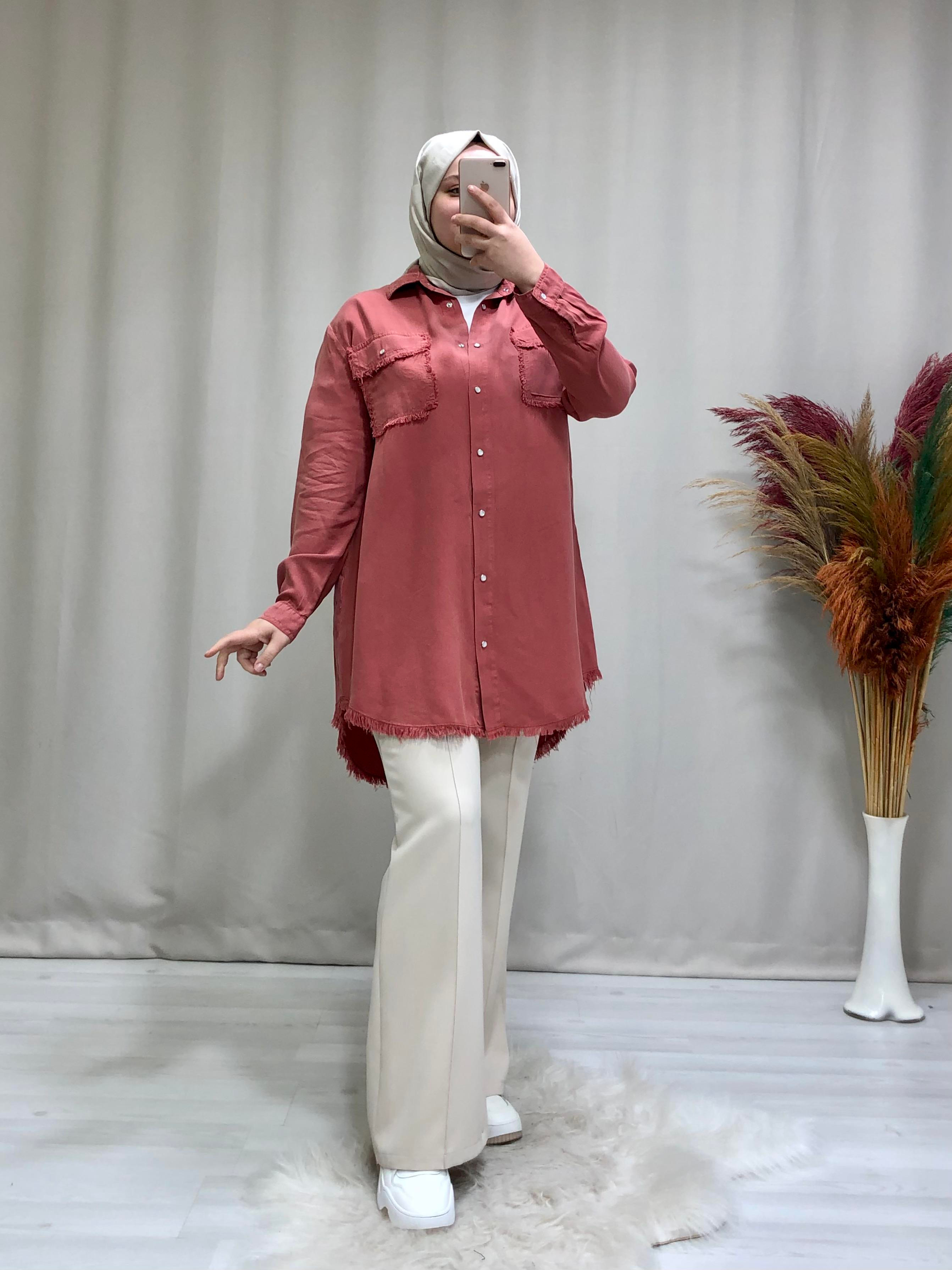 • Kadın tesettür püskül detaylı tensel tunik.  Ürünümüz önden çıt çıt kapamalı, gömlek yaka, püskül detaylıdır. Ürünümüz salaş kesim, günlük kullanıma uygundur.