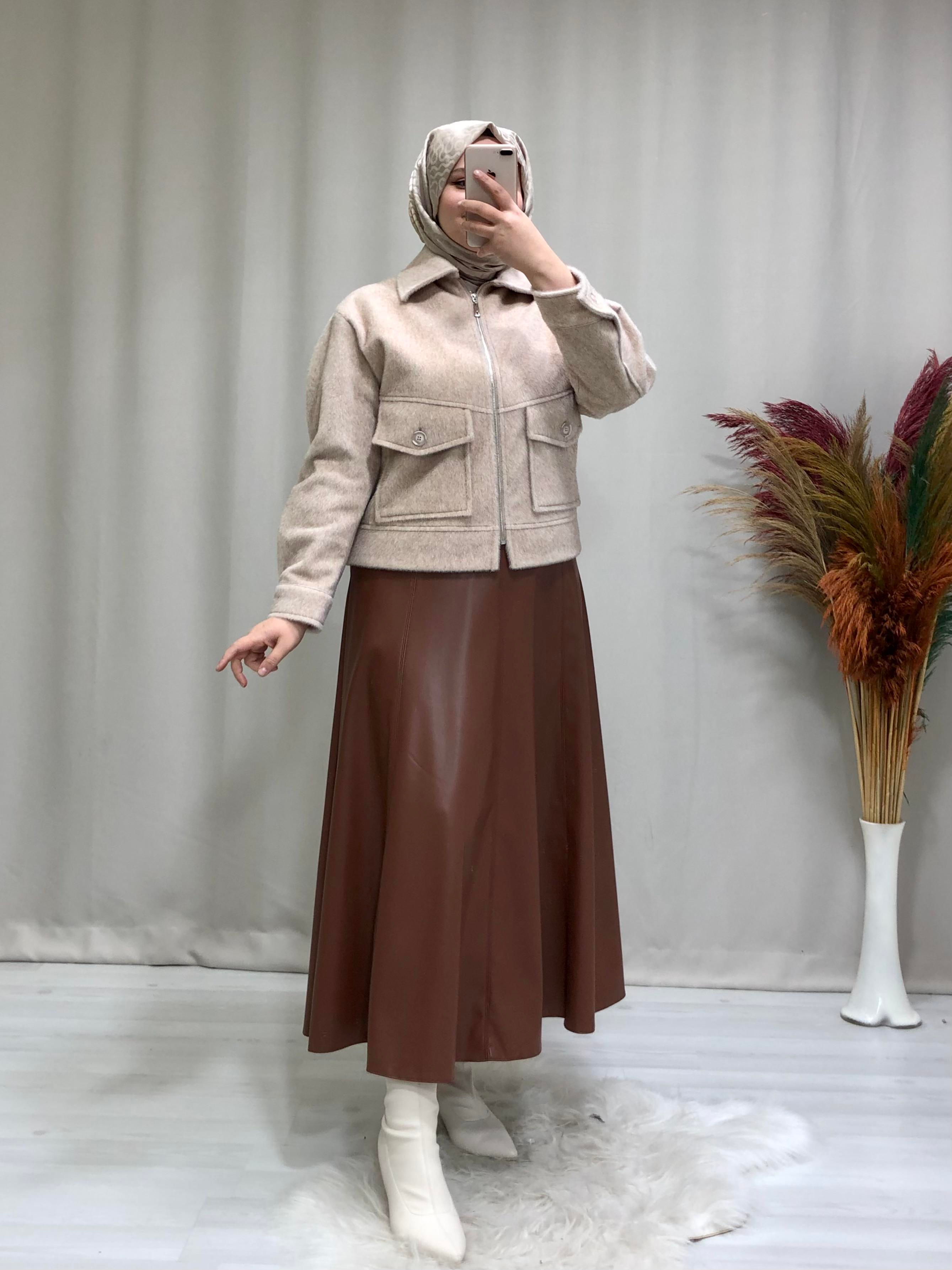 • Kadın tesettür verev kesim fermuarlı ceket. Ürünümüz önden fermuarlı, gömlek yaka,  cep detaylıdır.