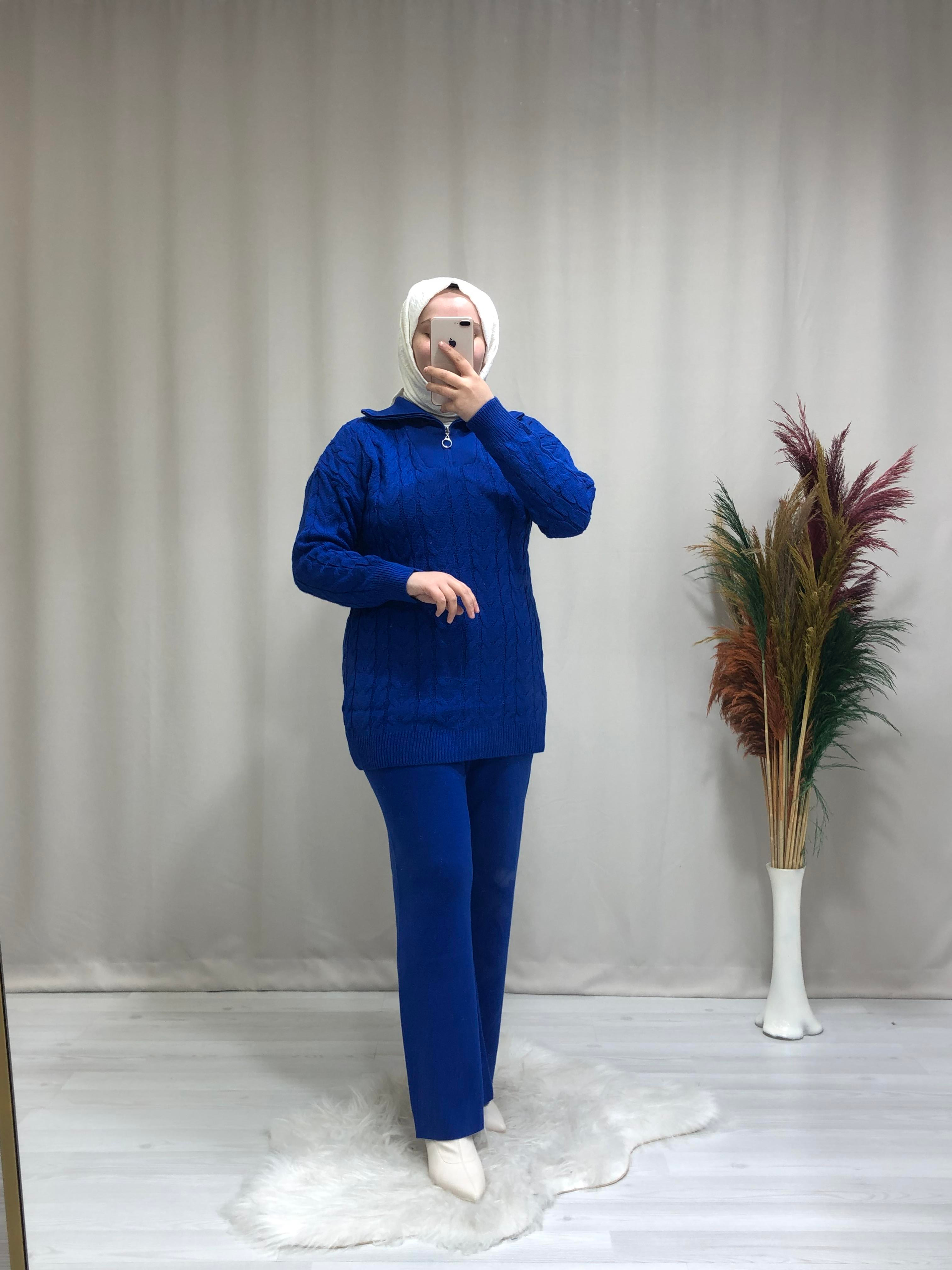 Kadın Yaka Fermuar Detaylı Triko Tesettür Takım.