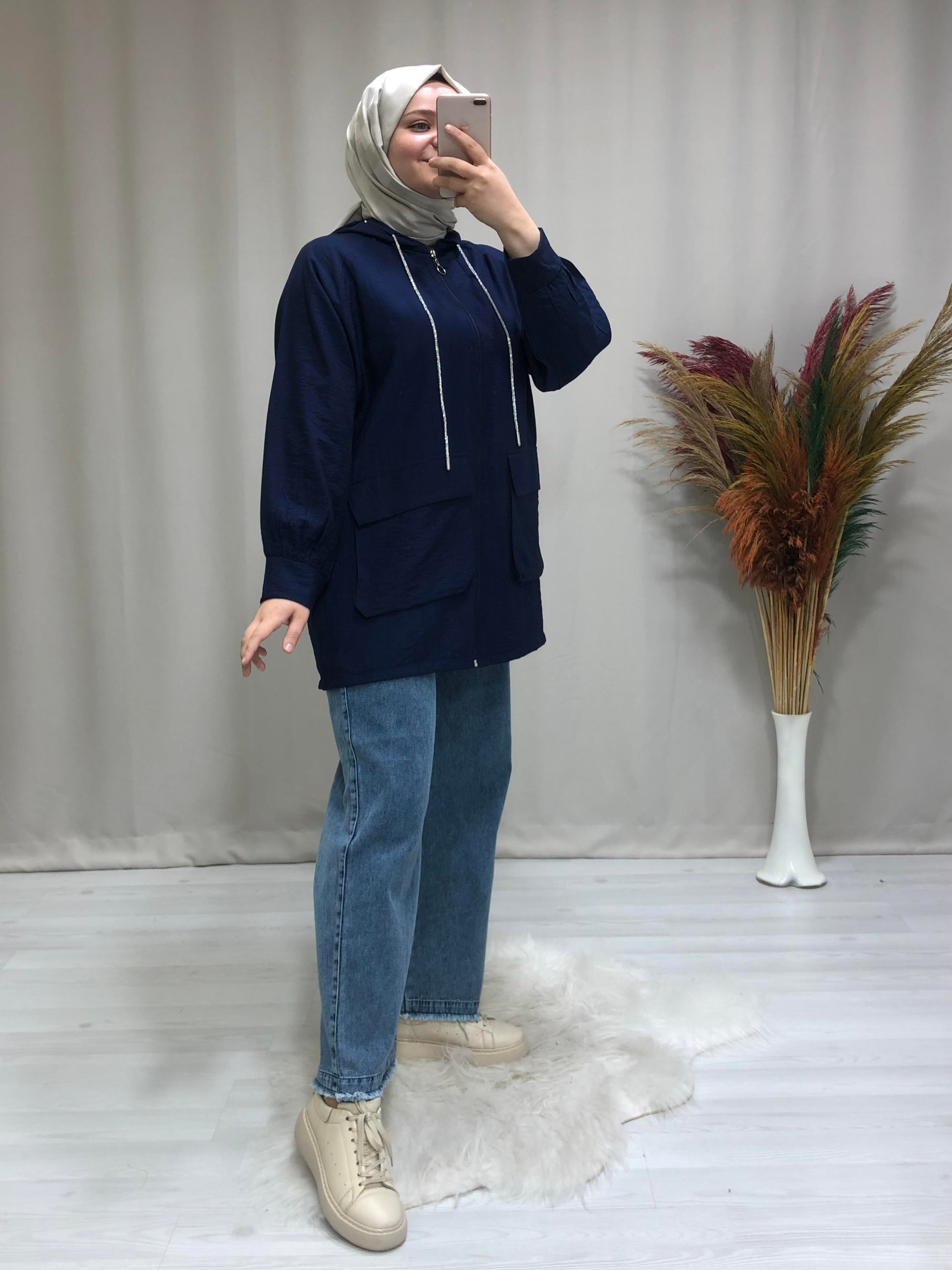 Kadın yazlık şapkalı önden fermuarlı tesettür kap. Ürünümüz kapüşonlu, önden fermuarlı cep detaylıdır .İnce keten kumaştır. Astarlı değildir.