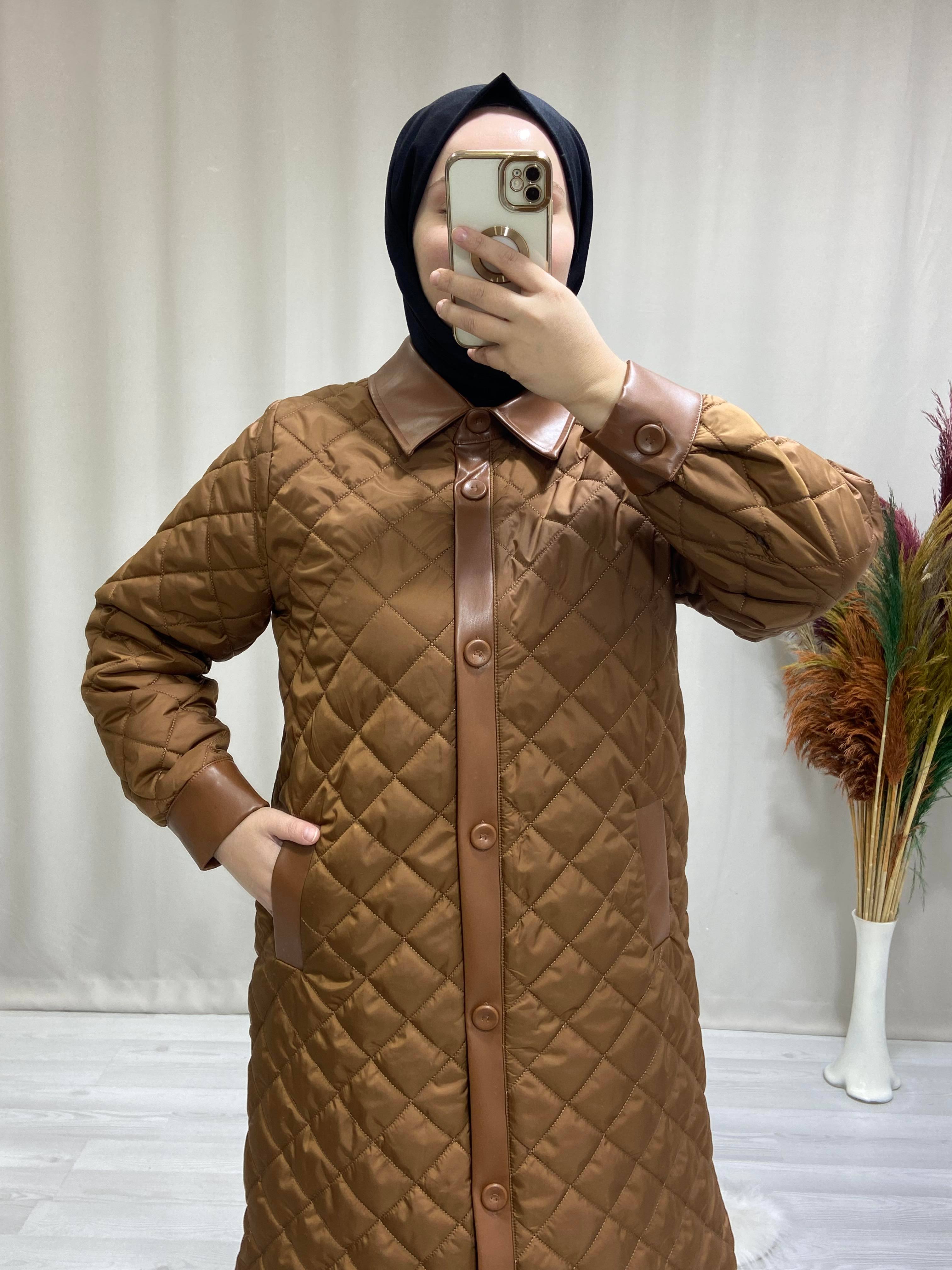 Kadın Siyah Kapitone Detaylı Tesettür Kap.