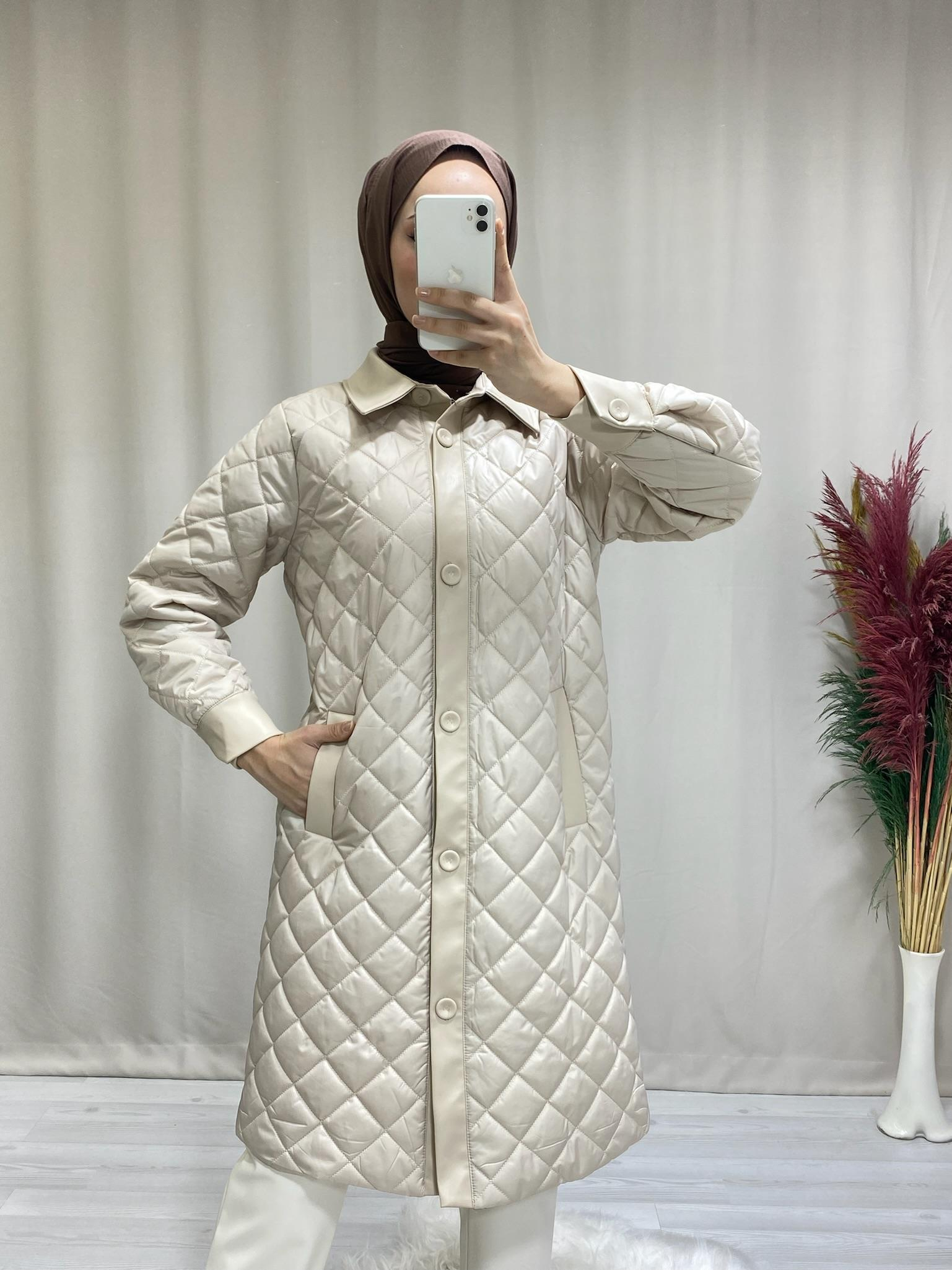 Kadın Siyah Kapitone Detaylı Tesettür Kap.